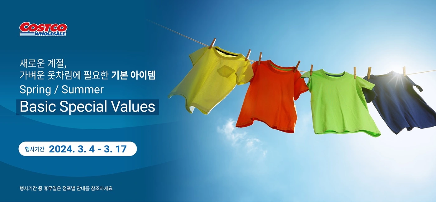 새로운 계절, 새로운 옷차림에 필요한 기본 아이템들 구매해 보세요. 자세한 정보는 행사기간 중 점포별 안내를 참조하거나 직접 문의하여 확인해 주시기 바랍니다.