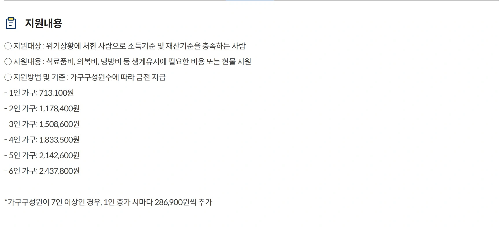 긴급복지 생계지원내용