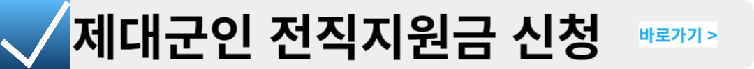 국가에서 지원해 주는 제대군인전직지원금을 최대 420만 원 지원한다고 합니다. 한시적일 수 있으며 조기마감될 수 있습니다. 아래 링크에서 신청부터 하세요. 전역 후 실업상태이거나 취업, 창업을 준비하신다면 진행부터 하시기 바랍니다.