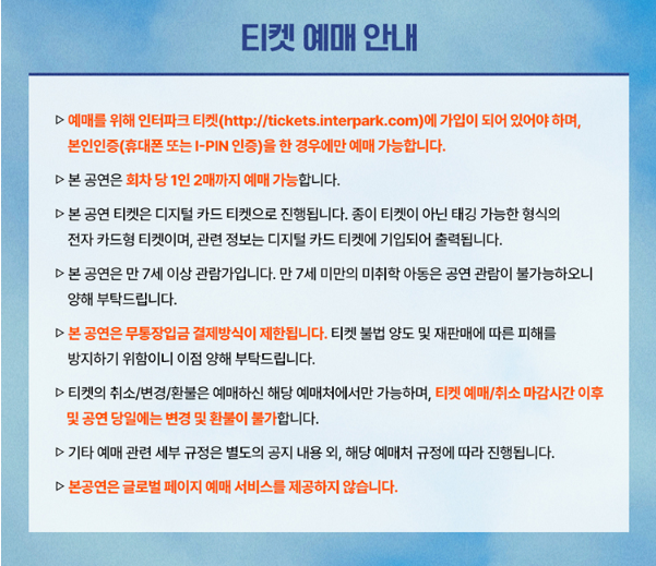 ■ 티켓 오픈: 2024년 4월 10일(수) 오후 8시 (매수제한: 회차당 1인 2매)